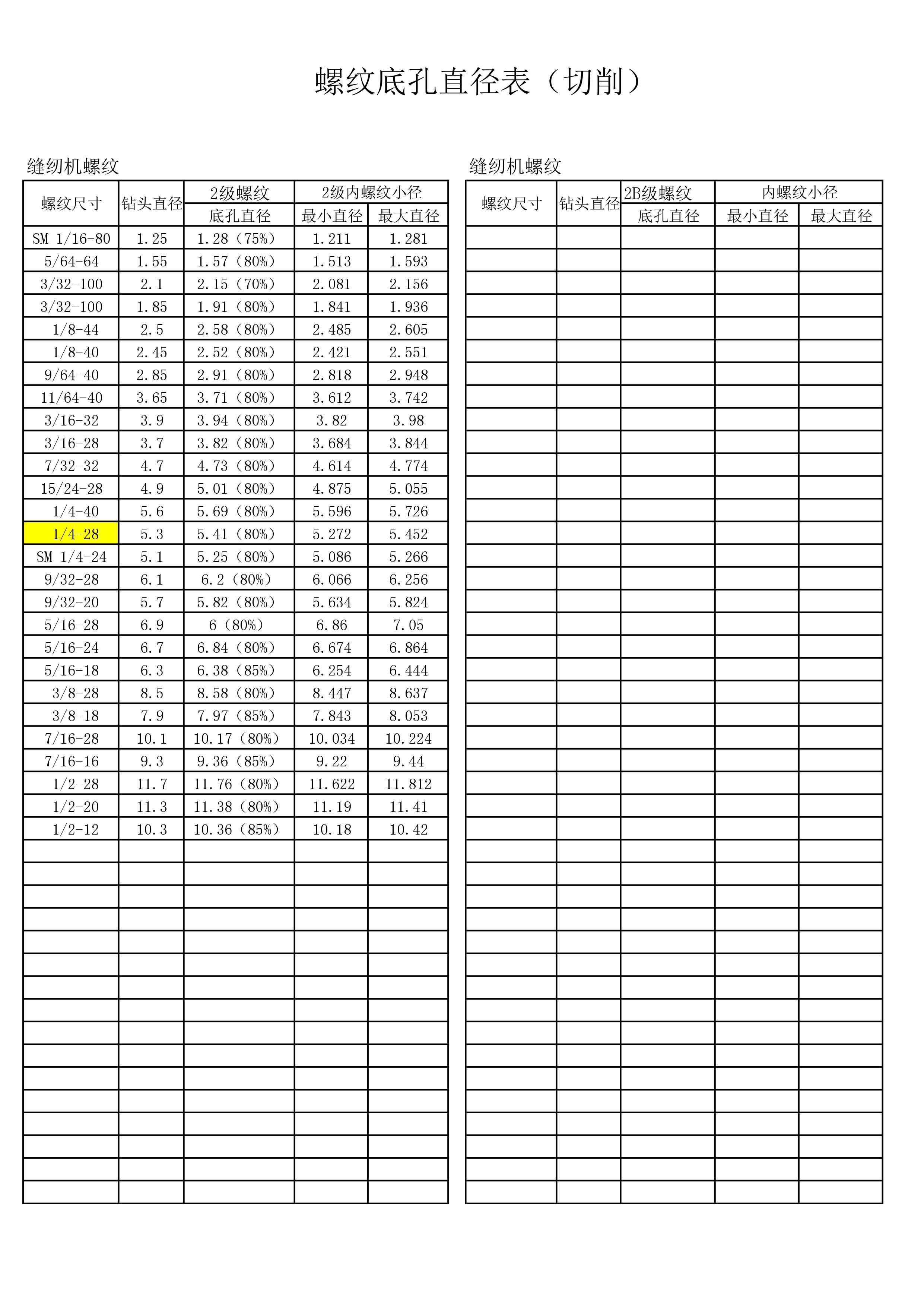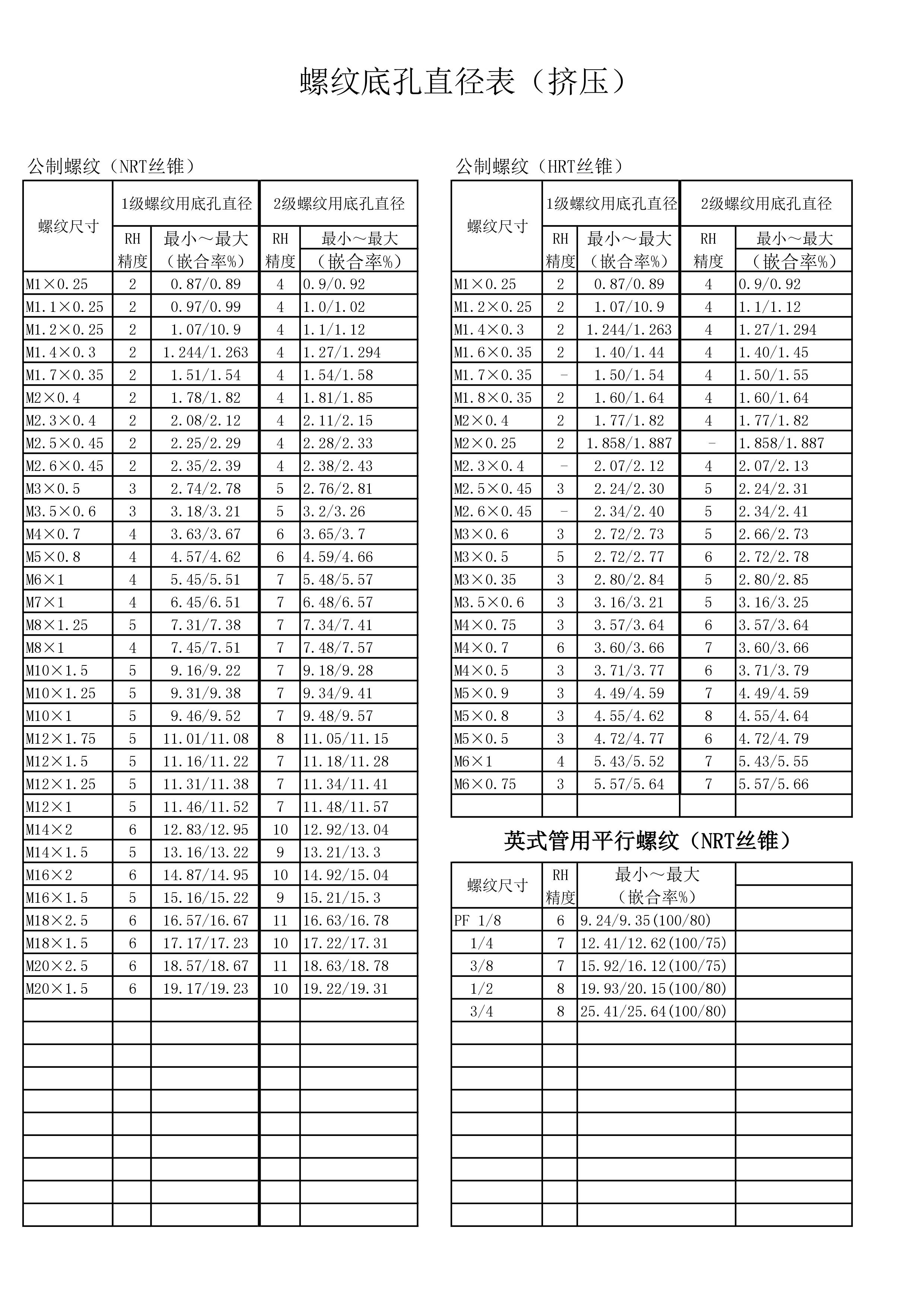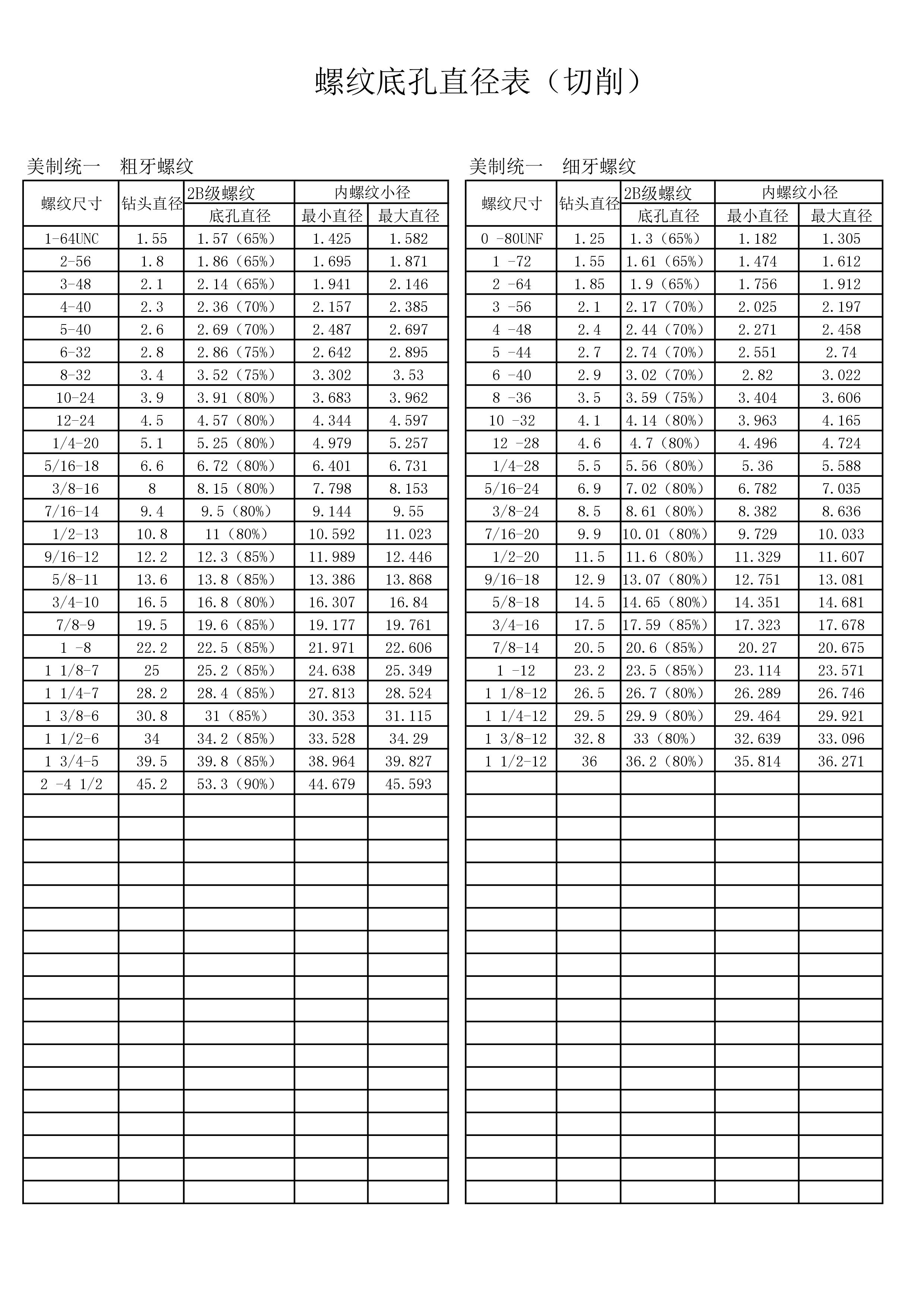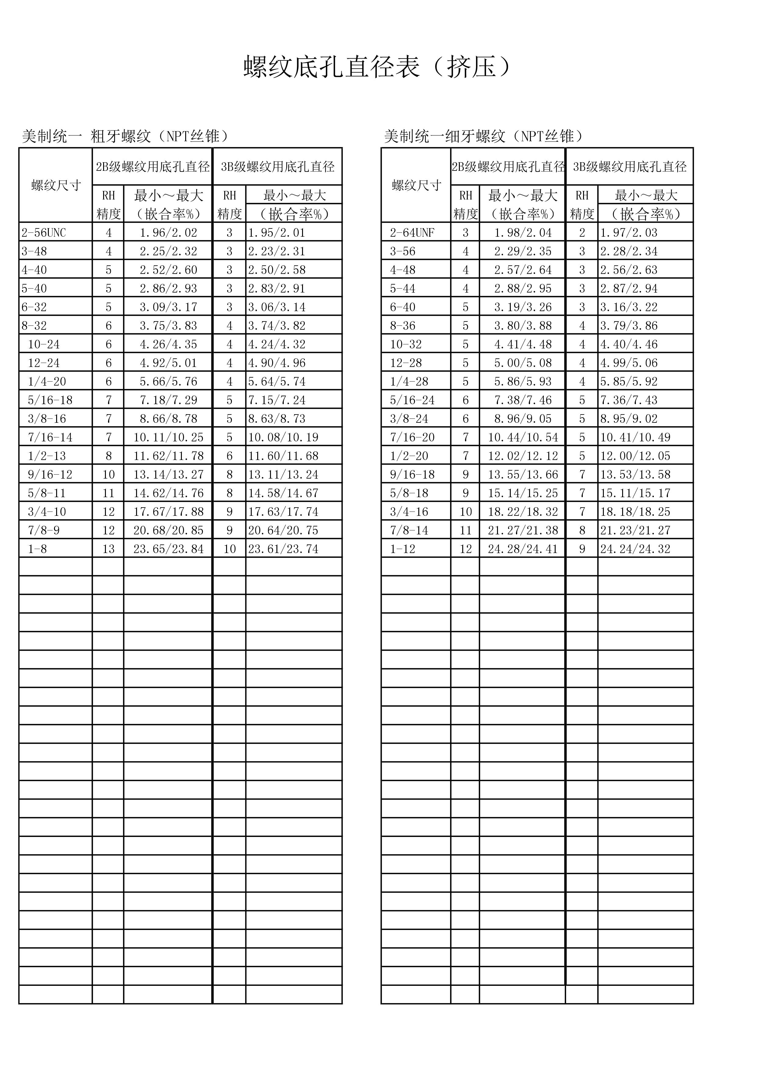 7.美制统一挤压 粗牙 细牙螺纹(NPT丝锥)